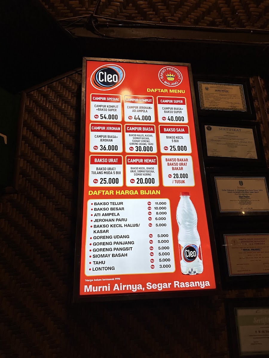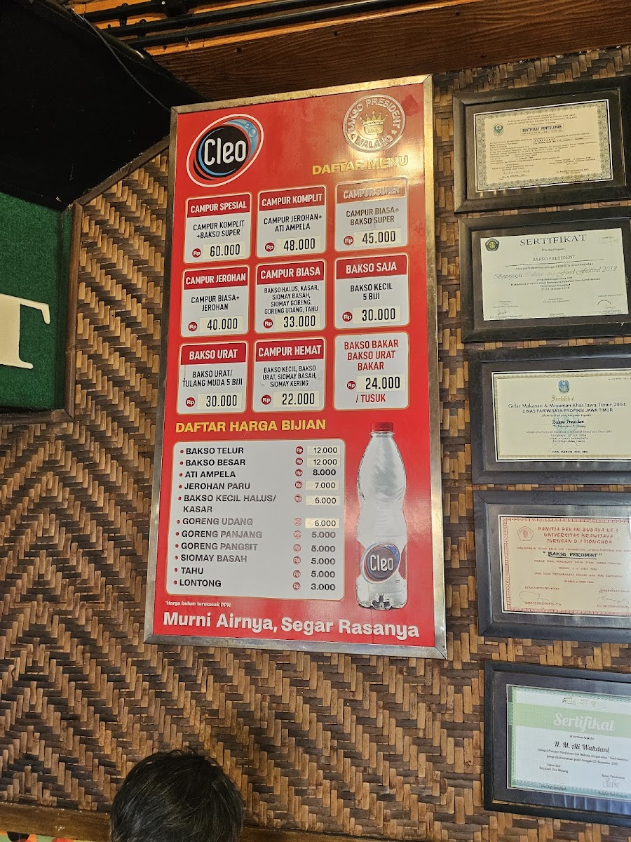 “ Flash back to 2023, I was pleased to visited the bakso president in malang. The location is near the train track, which makes a memorable moments I was tested for the food, I think is similar to other meatballs (bakso). May get the a viral is location and the brand name. Interested maybe The price is competitive like a mall food restaurant. And the support for online payment like qris and others. Last my opinion, it is difficult to find the car parking. I recommend using the gojek That is my personal review, maybe you have another. Please share with us ”